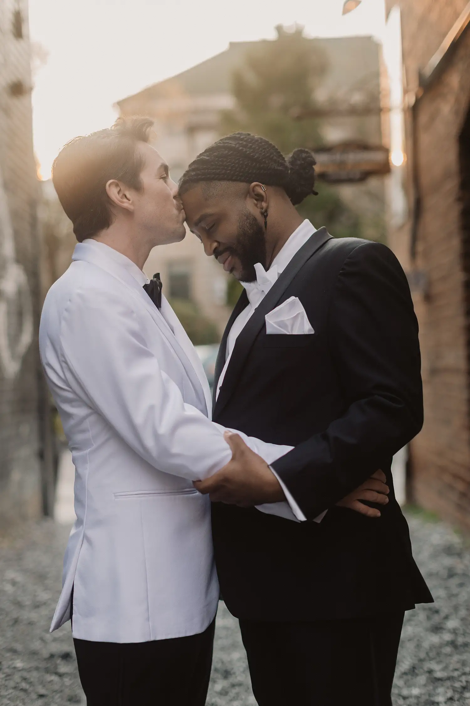 Jackson encourages finding a balance of unity and personality for marriage to LGBTQ+ couples wearing suits or tuxedos. “If both people in the wedding couple are wearing suits, that doesn’t mean you need to look exactly the same,” he said. Options include different accessories and matching suits, adjusting vests to complement each other, or suits of completely different colours, but adjusting with matching ties. “When you customize accessories and play costumes, the possibilities are endless,” he added.