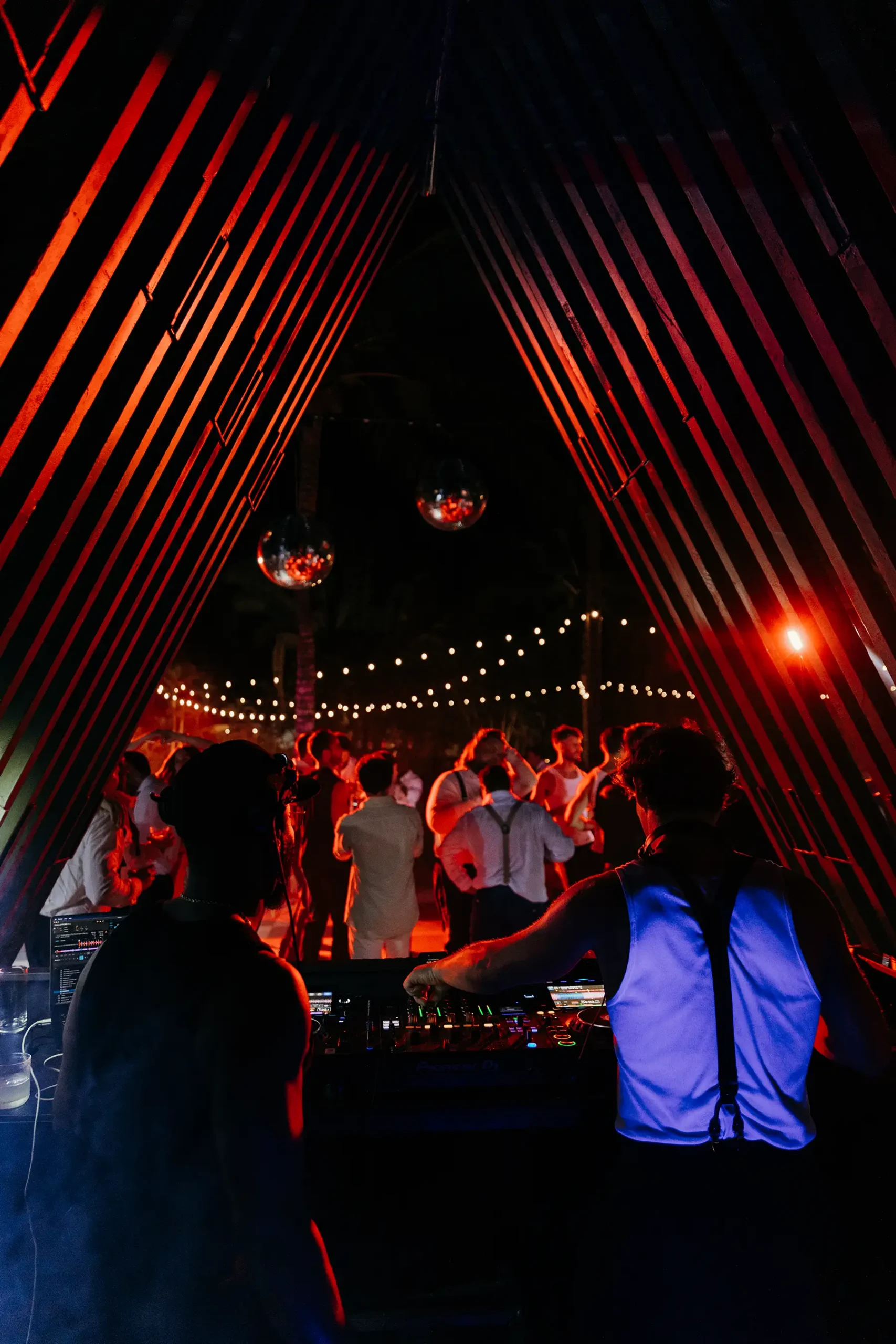 “From the start, we approached the weekend as a love letter to our people. We wanted it to feel elevated, joyful and full of intention,” Khasan says. They carved out dedicated planning sessions after work, complete with Google Sheets and a giant planning board covered in color-coded Post-its: pink for vendors, green for purchases, blue for payments, yellow for ‘Khasan to do,’ orange for ‘Jason to do,’ purple for partnerships. “It also helped that our amazing wedding planner Maria Soriano Jimeno made the process easy and fun.”