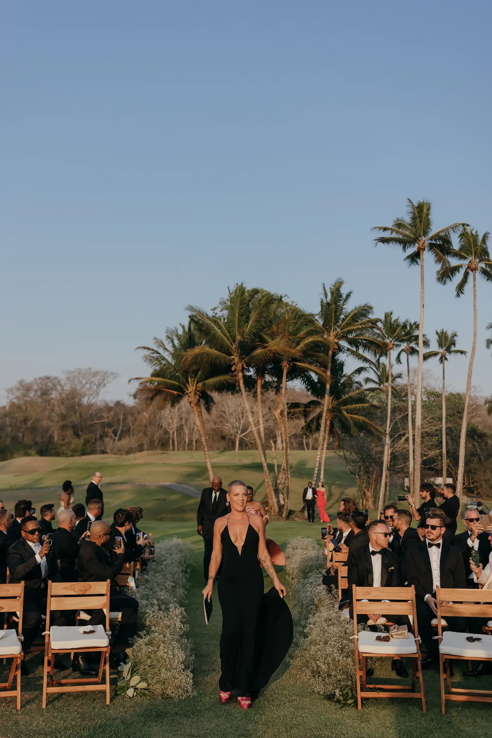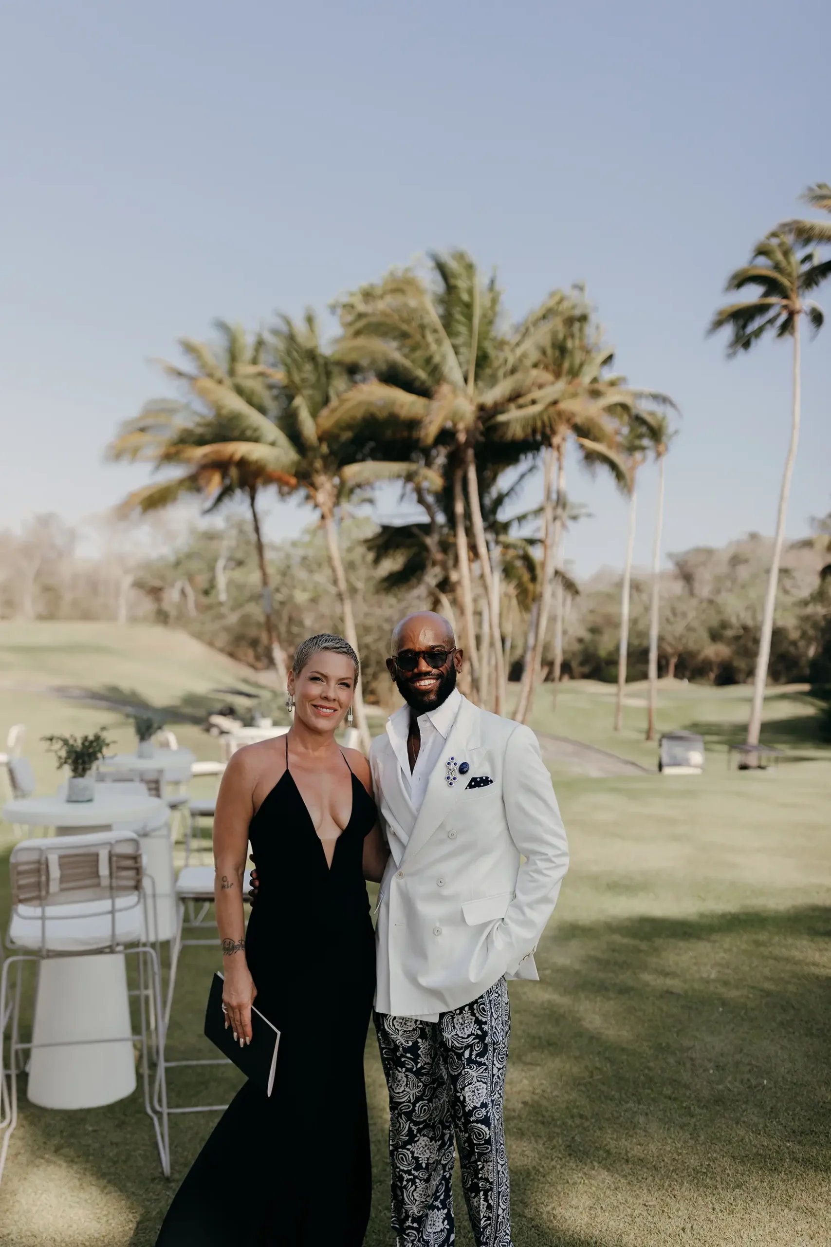 “We were beyond honored to have our dear friend P!nk officiate the ceremony, and pop star Betty Who performed our first dance song,” Khasan says. The intimate celebration at Four Seasons Tamarindo, a hidden paradise on Mexico’s Pacific coast, brought together 115 of their favorite people for a fashion-forward weekend that perfectly captured the couple’s aesthetic and love story.