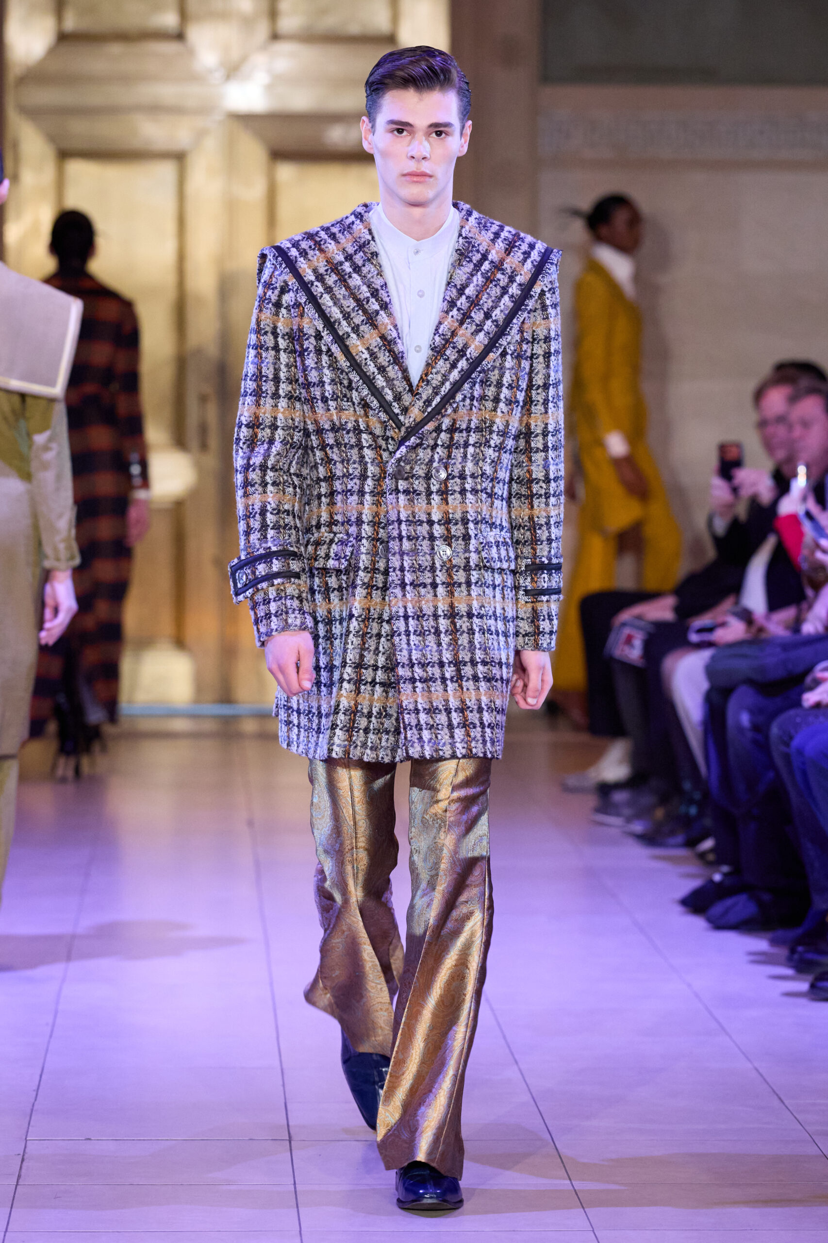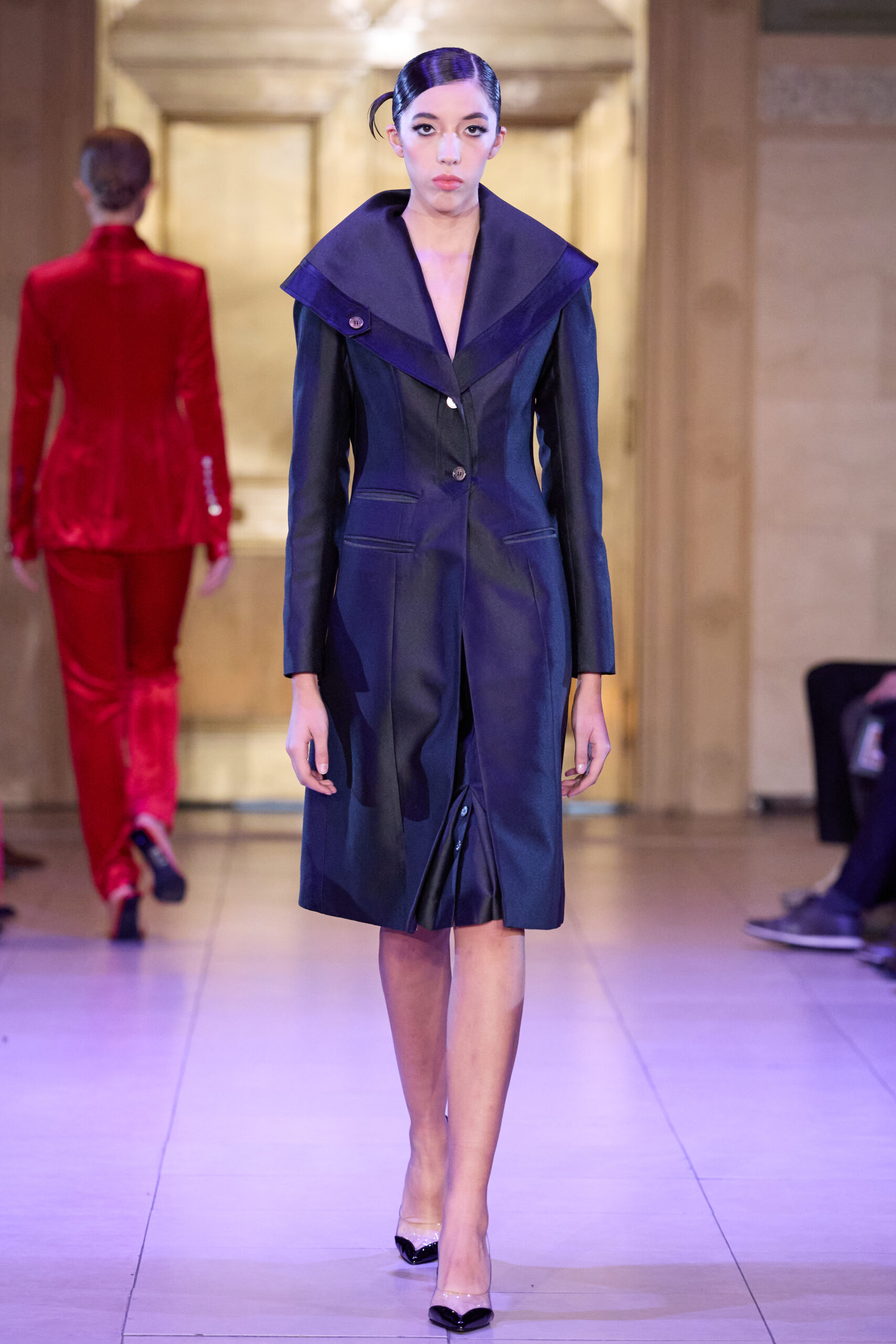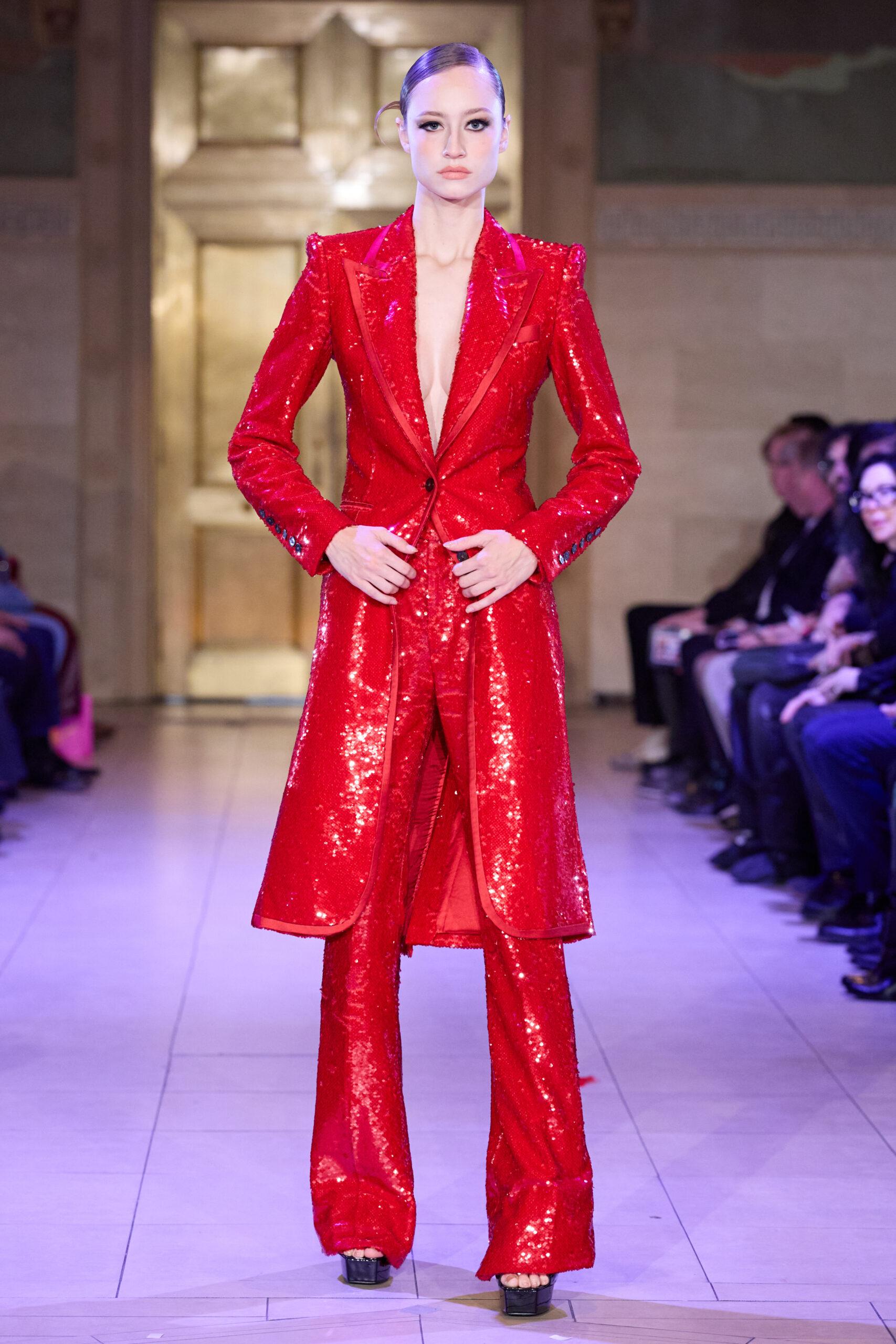 Set in a grand Art Deco setting, the co-ed collection draws on the captivating visual language of the late 1920s and 1930s and classic film noir, combining sophistication with an undercurrent of tension and consequence. Savile Row-trained and recognized for her work across fashion, film and music, Breton approaches the season with silhouettes designed to feel intentional and sculptural, emphasizing the character and sense of story in each look.