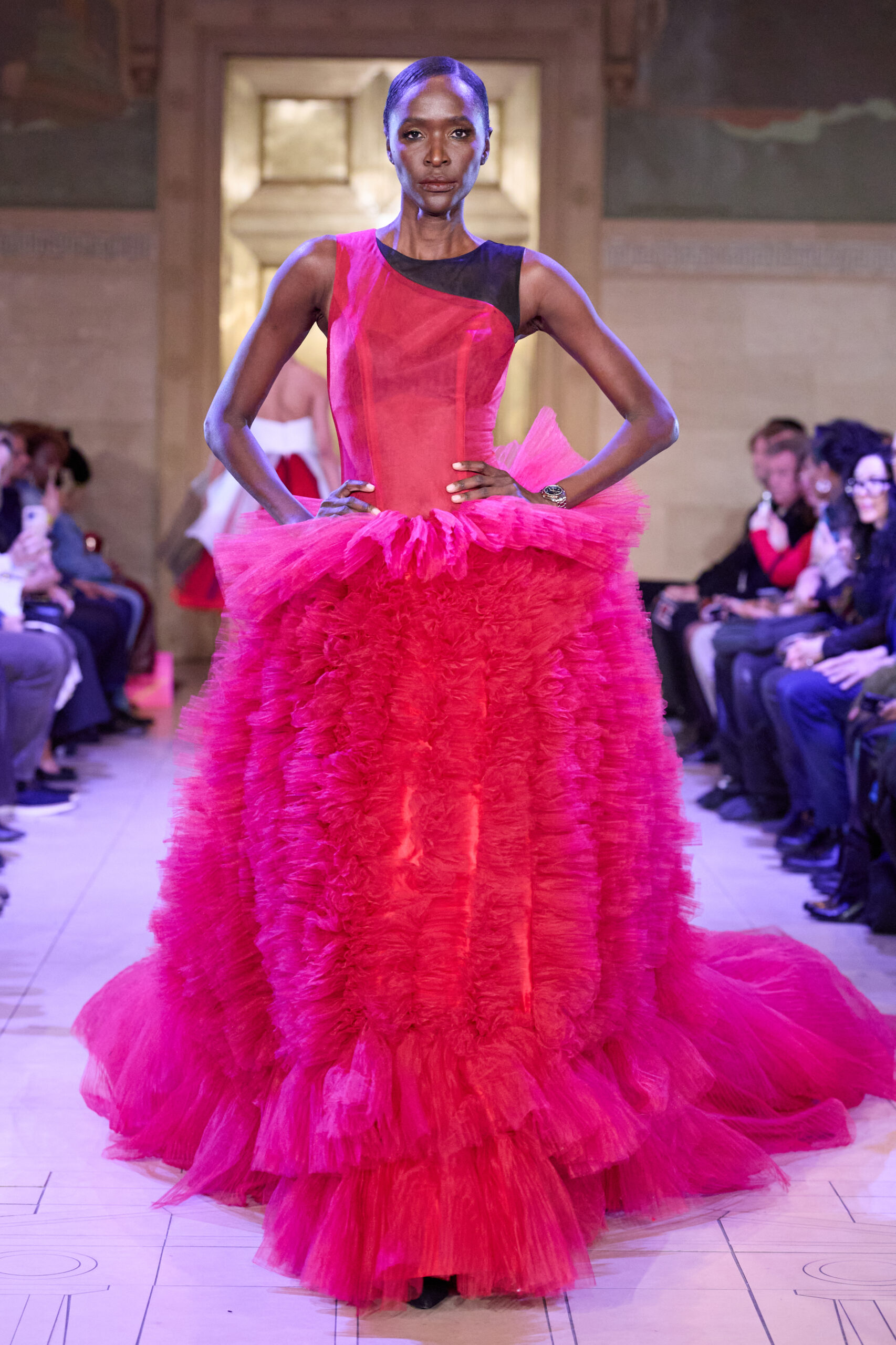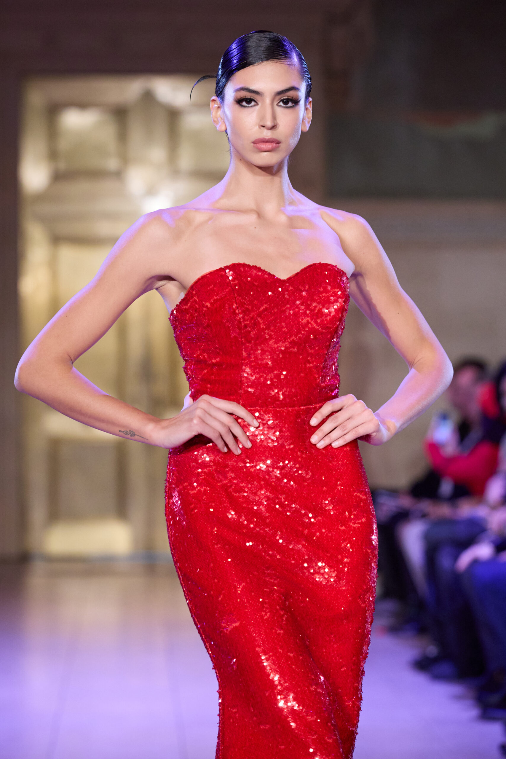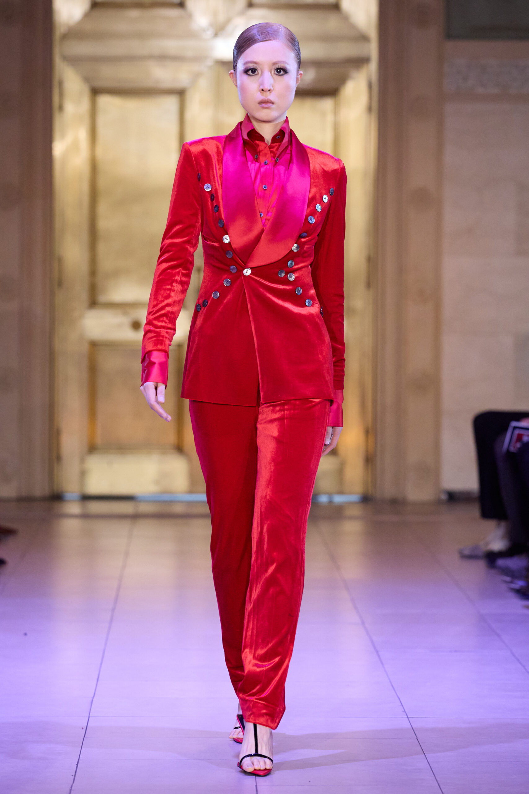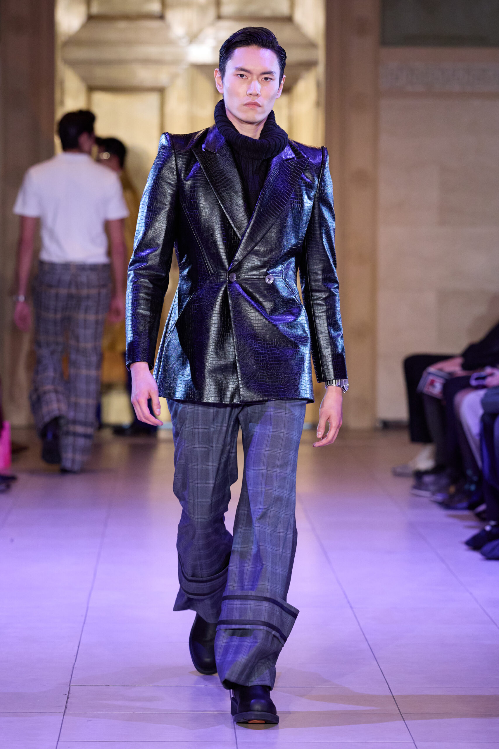 Set in a grand Art Deco setting, the co-ed collection draws on the captivating visual language of the late 1920s and 1930s and classic film noir, combining sophistication with an undercurrent of tension and consequence. Savile Row-trained and recognized for her work across fashion, film and music, Breton approaches the season with silhouettes designed to feel intentional and sculptural, emphasizing the character and sense of story in each look.