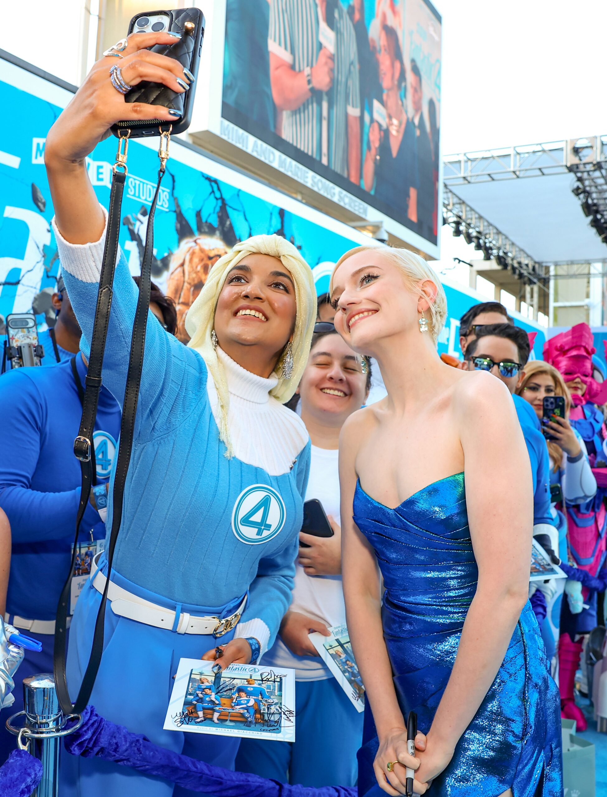 Julia Garner takes on the role of Shara Bal, and a stunning rethink of Marvel’s silver surfer Fantastic Four: The First Stepmade an impressive statement on the blue carpet with the creation of a custom Gucci. The strapless gown exuded timeless elegance with a lover’s neckline, soft routing, and dramatic thigh high slits that added just the right amount of edges.