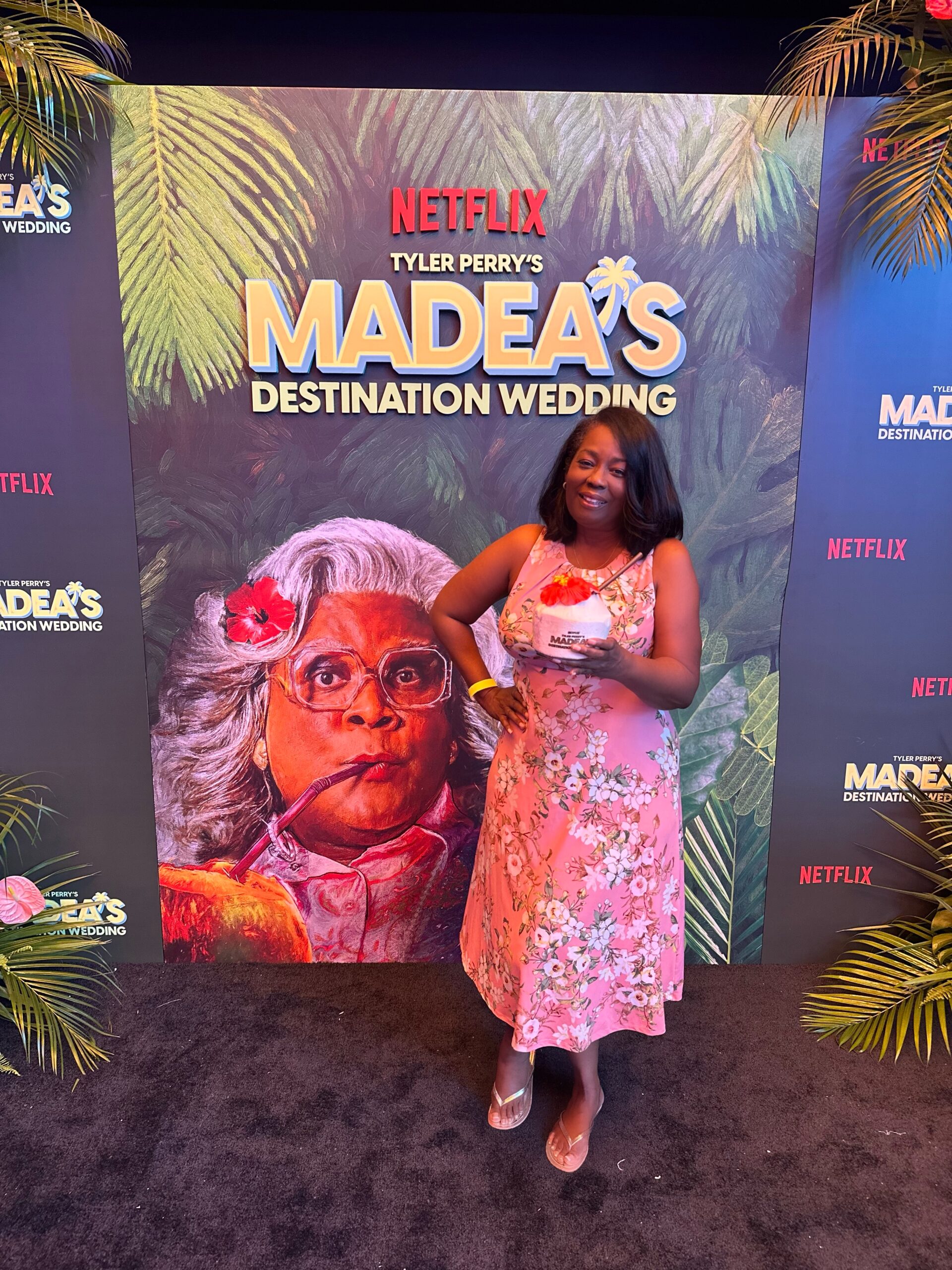 Last night was an absolute explosion! I had the opportunity to attend a pre-screening Madea’s destination wedding Here in Atlanta, and who do you think would have jumped in to surprise us? Nothing but Tyler Perry himself! He personally welcomed the audience, introduced the film, and the energy in the room was electricity.