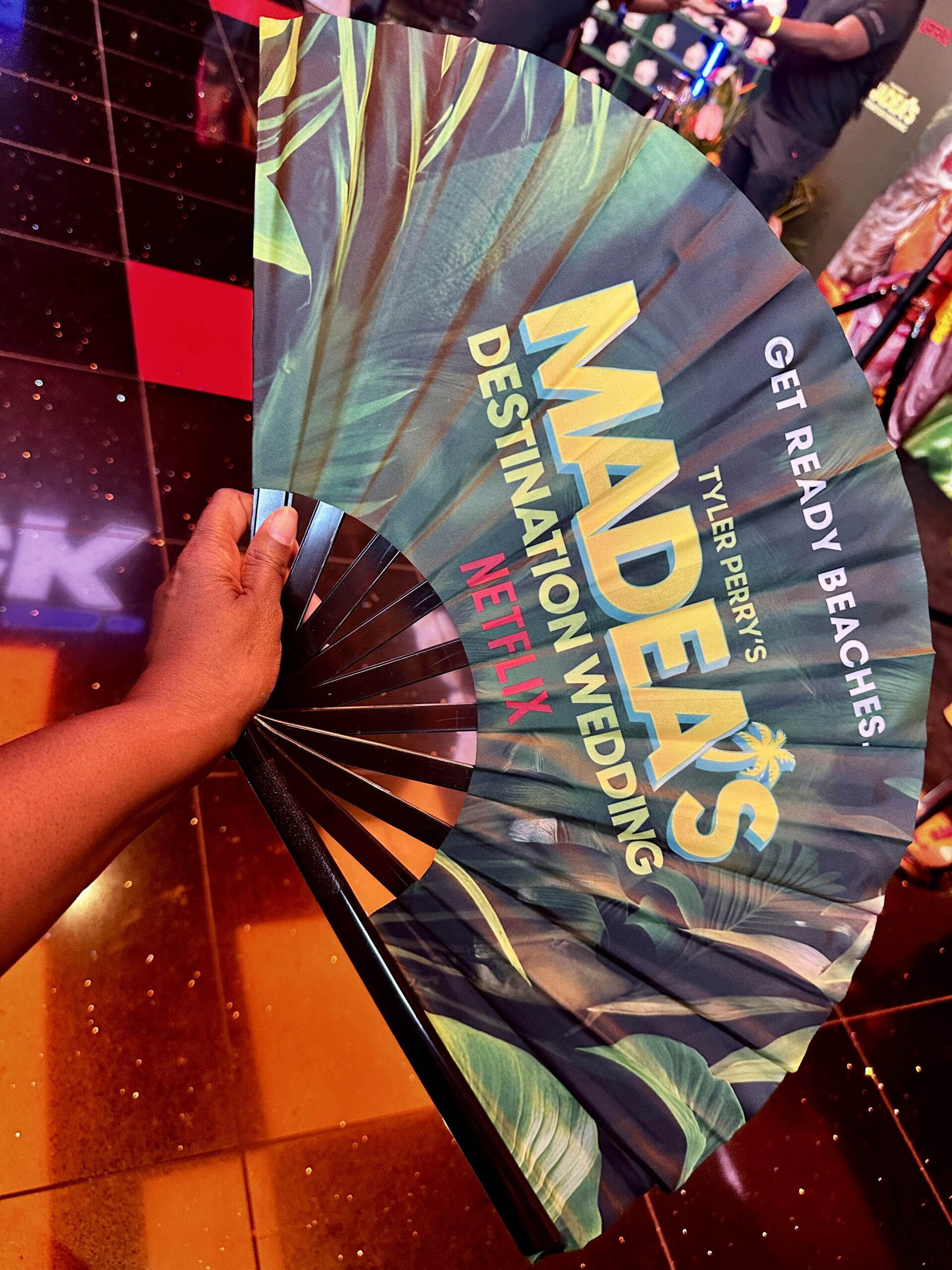 At the screening, Netflix and Tyler Perry really went out with merchandise! Guests were treated to a fun mix of snacks and tropical vibes. They bring those cocky “Where are their fans?” souvenirs! All the details were perfectly executed and branded completely on.